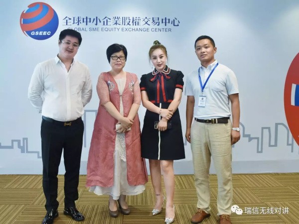 煙臺瑞信網(wǎng)絡(luò)科技有限公司董事長鄧偉杰先生、總經(jīng)理呂沙沙女士、全球中小企業(yè)股權(quán)交易中心董事/CEO朱新蘭女士與君融資本董事長朱幼泉先生合影留念!